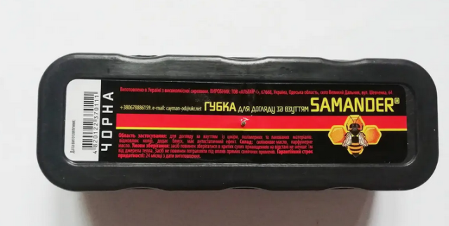 Губка - просочення для догляду за взуттям, чорна, прямокутна. Розмір 12*4,5*3,7 см.